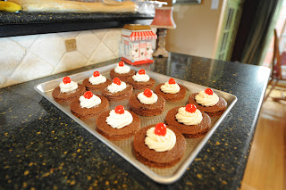 I used my little decorating tool and piped on the frosting and topped them with a cherry, don't they look yummy!